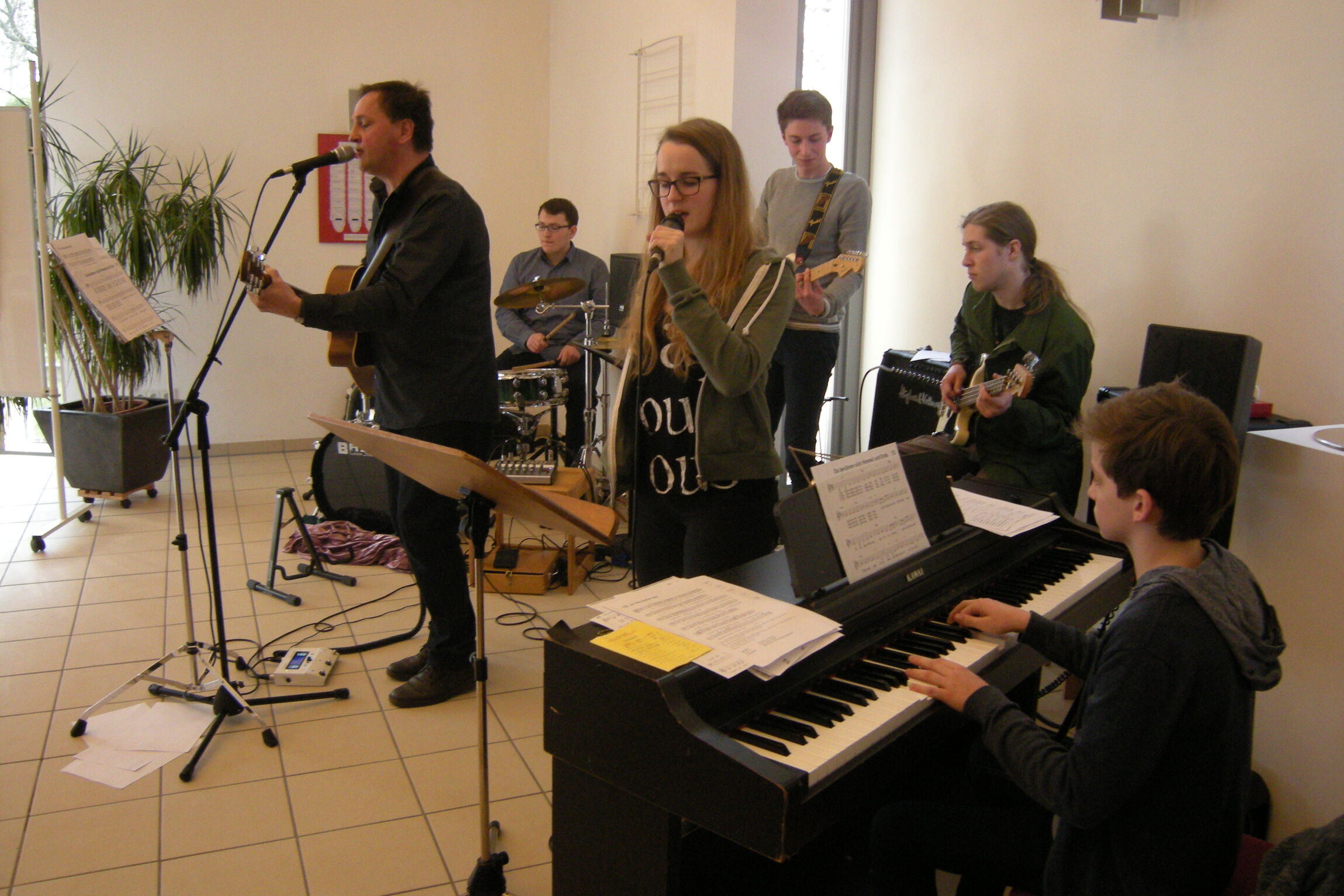 Musikworkshopwochenende für junge Instrumentalist*innen (Schlagzeug, Bass, E-Gitarre, Saxophon, Posaune, Trompete) und Sänger*innen. Es können Erfahrungen im Zusammenspiel mit anderen gesammelt werden und Instrumente ausprobiert werden.